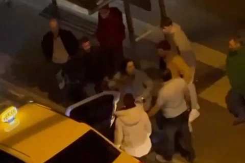 Sözlü tartışmadan hırsını alamayan kadın, taksiden inen adamın yüzüne arka arkaya tokat attı.