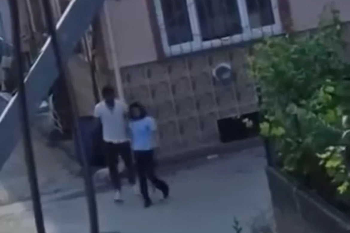 Kadının kendisine tepki vermesi üzerine öfkeli adam, "Yürü lan" diyerek üzerine gittiği kadını iterek zorla götürdü. Kendisine direnen kadın aldığı darbe sonucu yere düşünce "Vurma" diyerek bağırdı.