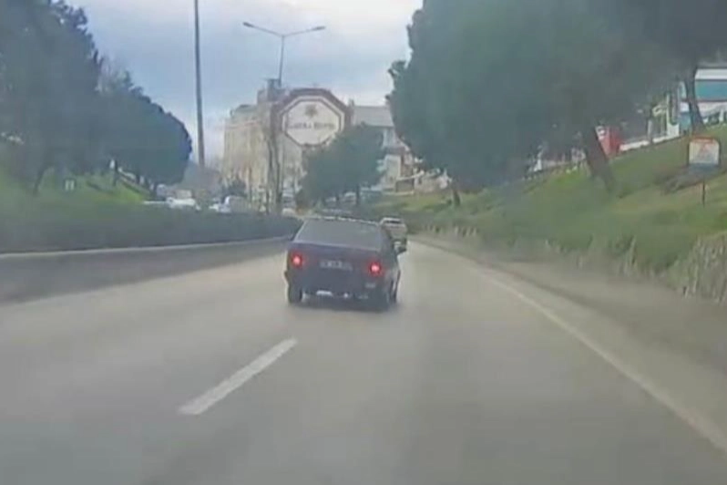 Yaşanan tehlikeli anlar trafikteki başka bir aracın kamerasına saniye saniye yansıdı.