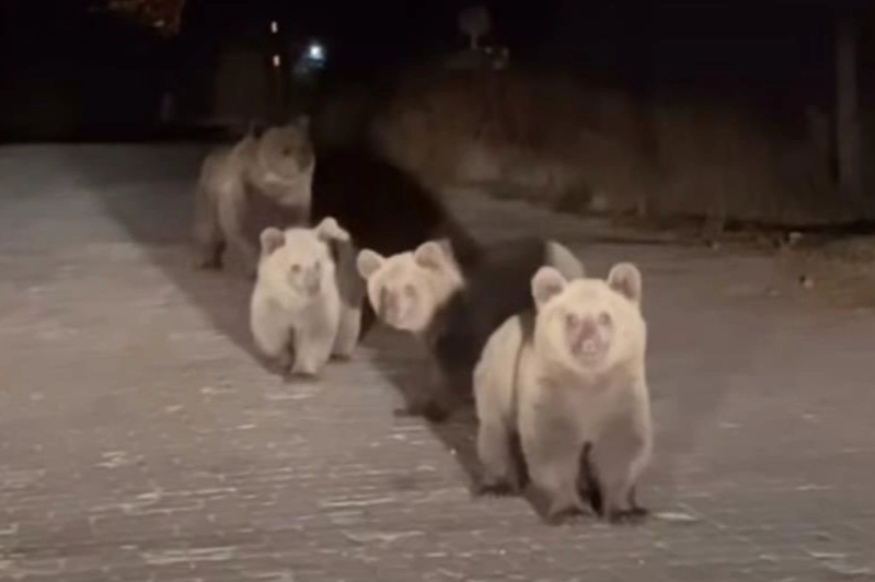 Bursa'nın en önemli turizm merkezlerinden biri olan Uludağ Milli Park'ta aracıyla seyir halindeki bir vatandaş, yol üzerinde ayı ailesi olduğunu gördü.