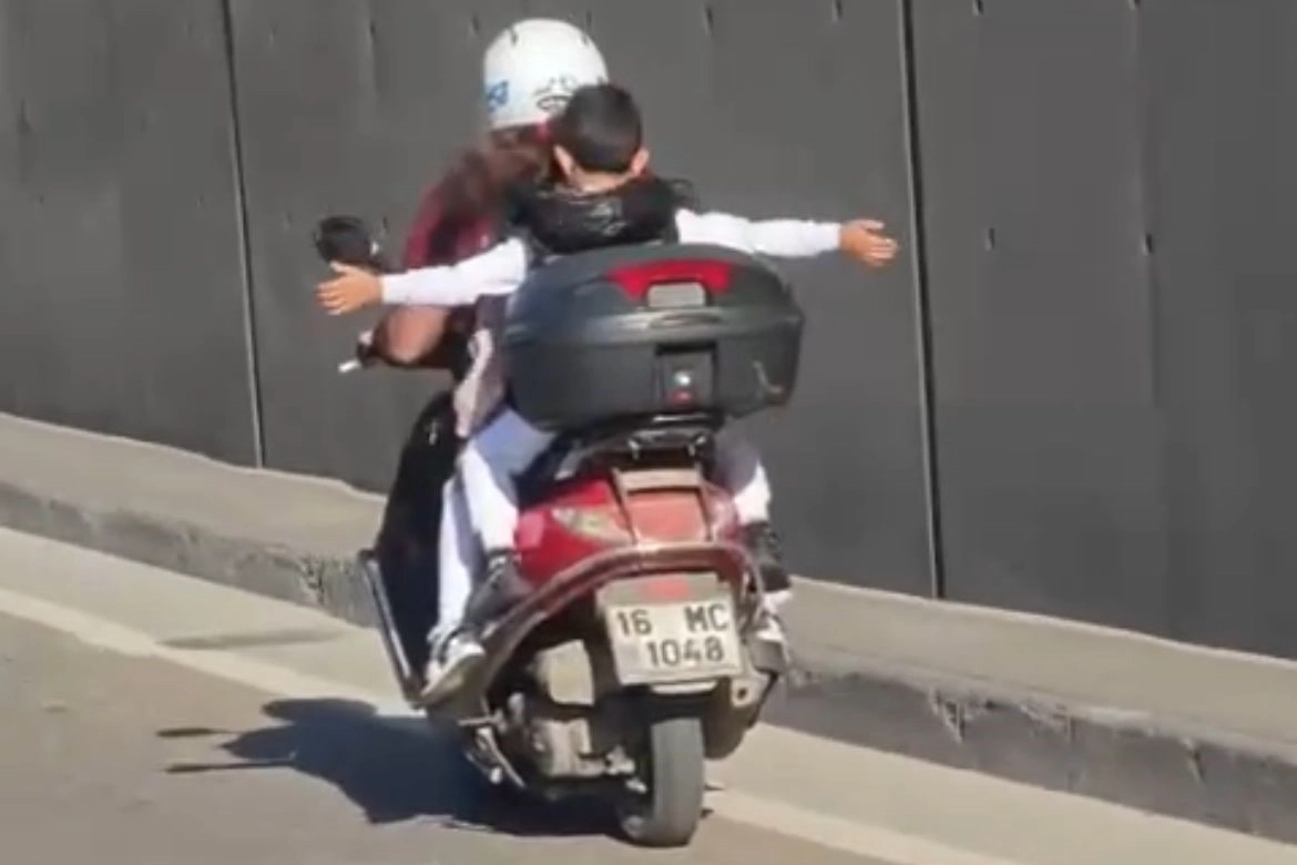 Sürücü seyir halindeyken, arkasındaki çocuklar ise bulunduğu durumu oyuna çevirip ellerini açarak yolculuk etti. Tehlikeli yolculuk kilometrelerce sürerken, o anlar trafikteki başka sürücülerin kamerasına yansıdı.