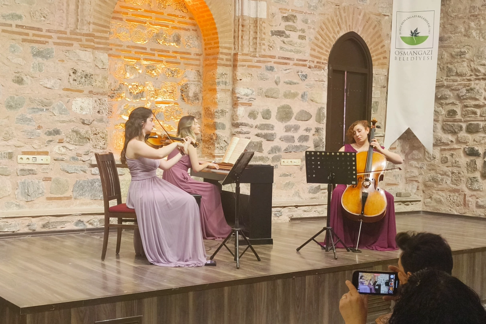 Gecede kemanda Begüm Bensu Ünsal, viyolonselde Ezgi Yağmur Bilgin ve piyanoda Dilan Dereli, sergiledikleri sahne performanslarıyla Bursalı müzikseverlerin beğenisini kazandı.