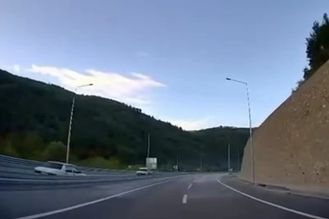 Tünel çıkışı sağdan gitmesi gerekirken, sola doğru yöneldi. Arkasından gelen arabanın ikazına rağmen sola giren otomobil sürücüsü, karşıdan gelen araçlarla da çarpışmadan yoluna devam etti.