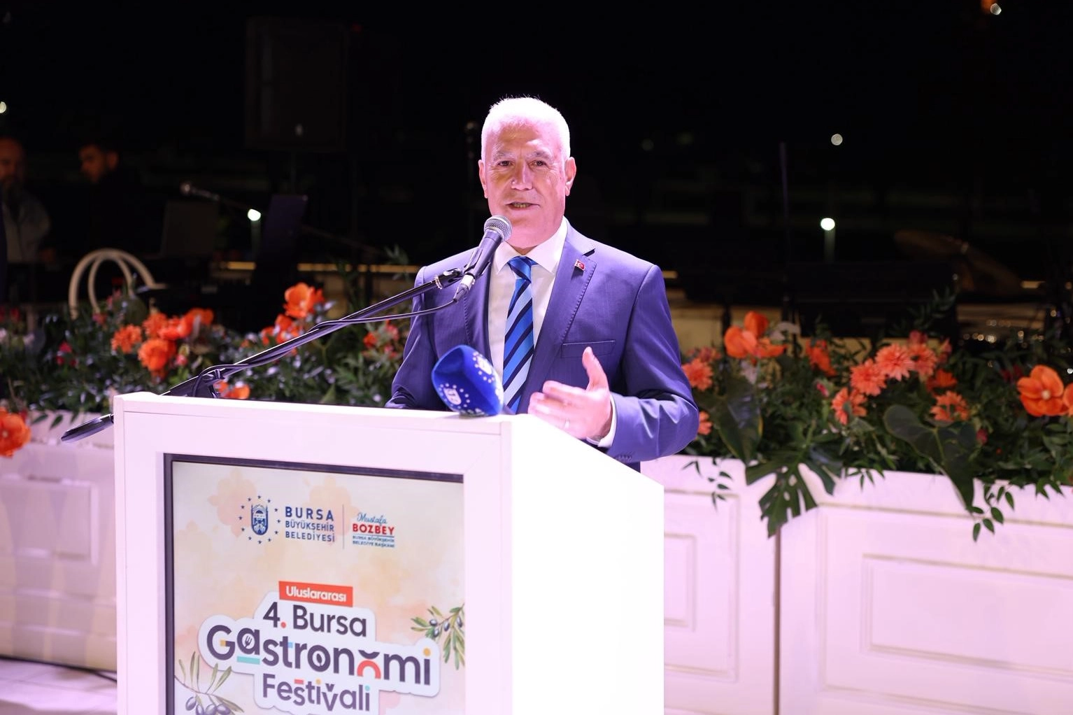 Gala yemeğinde konuşan Büyükşehir Belediye Başkanı Mustafa Bozbey, Bursa’nın köklü mutfak kültürünü dünyaya tanıtmak ve gastronomi turizmine yeni bir soluk kazandırmak adına önemli bir adım attıklarını söyledi. 4. Uluslararası Bursa Gastronomi Festivali açılışının adeta şölen tadında gerçekleştiğini belirten Başkan Bozbey, "Festivalimiz, dostluğu, kardeşliği, paylaşmanın bereketini ve Bursamızın topraktan tabağa uzanan tüm değerlerini yansıtan bir şölen niteliği taşıyor. ‘Tescilden Tabağa Bursa Gastronomisi’ adlı eşsiz eseri Bursamıza kazandıran başta Akademisyen Yazar Fatih Yıldırım’a, fotoğraf ve video çekimlerinden düzenlemelere kadar emeği geçen herkese teşekkür ediyorum. Festivalimizin, Bursamızın köklü mutfak kültürünü dünyaya tanıtacağı dolu dolu bir şölen olmasını diliyorum" dedi.