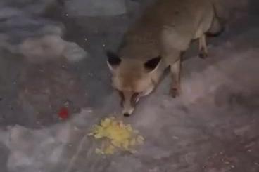 Otomobilini kenarı çeken vatandaş, yanında sadece yiyecek olarak bulunan cipsi, tilki ile paylaştı. Kendisine ikram edilen cipsi geri çevirmeyen tilki, afiyetle bütün paketi midesine indirdi.