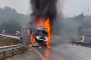Yangın itfaiye ekipleri tarafından söndürülürken, alevlere teslim olan tırın bir kısmı yanarak kullanılamaz hale geldi.
