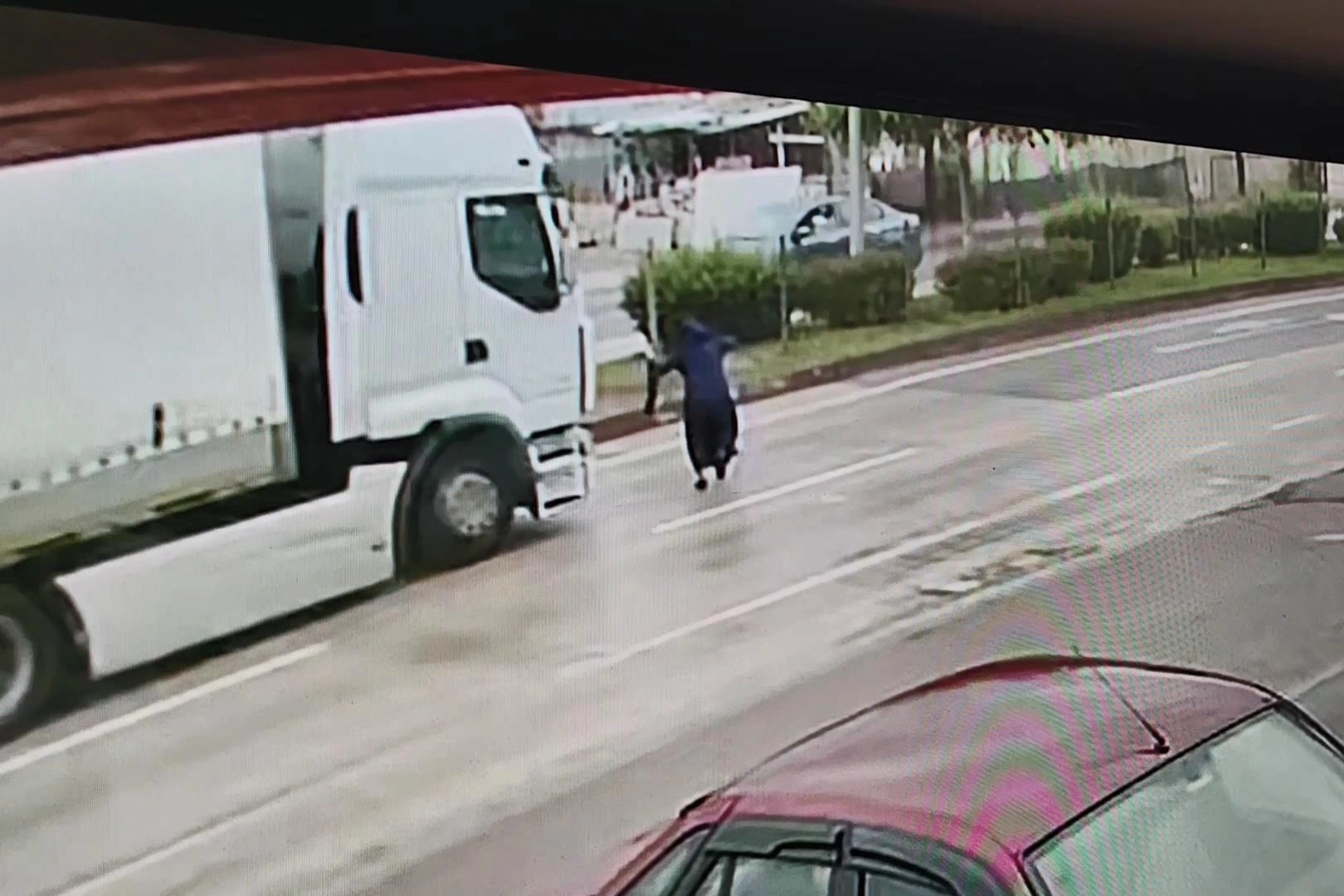 Tır sürücüsü S.V. ise polis tarafından gözaltına alındı.Kaza, çevredeki bir güvenlik kamerasınca kaydedildi.