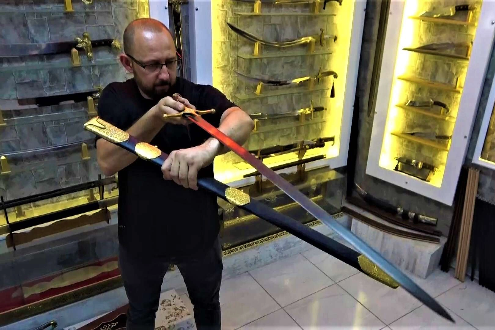 Topkapı Sarayı’nda Kutsal Emanetler bölümünde sergilenen Hazreti Muhammed’e ait kılıcın bire bir replikasını üreten Aziz Şen, “22 yıldan bu yana bıçak imalatı ile uğraşıyorum. Ayrıca 17 yıldır kültürel mirasımız olan kılıçlar, kamalar, hançerler ile uğraşmaktayım. Yaptıklarımız el işi, zaman alan ürünlerdir. Halen talep olduğu için çalışmalarımıza devam etmekteyiz. Kılıç imalatı haricinde Topkapı Müzesi’nde bulunan eserlerin replikasını yapıyoruz. Bu ürünler genellikle altın kaplama ürünler oluyor. En çok rağbet gören ürünlerimizden bir tanesi de Peygamber Efendimiz Hazreti Muhammed’in kılıcı ve Fatih Sultan Mehmet’in kılıcı. Bunlar çok rağbet gören, işçilik isteyen ürünlerdir. Altın kaplama olduğu için de maliyeti biraz yüksek. Maneviyat açısından müşterinin talepleri neticesinde en çok tercih edilen modeller arasında bulunuyor” dedi.