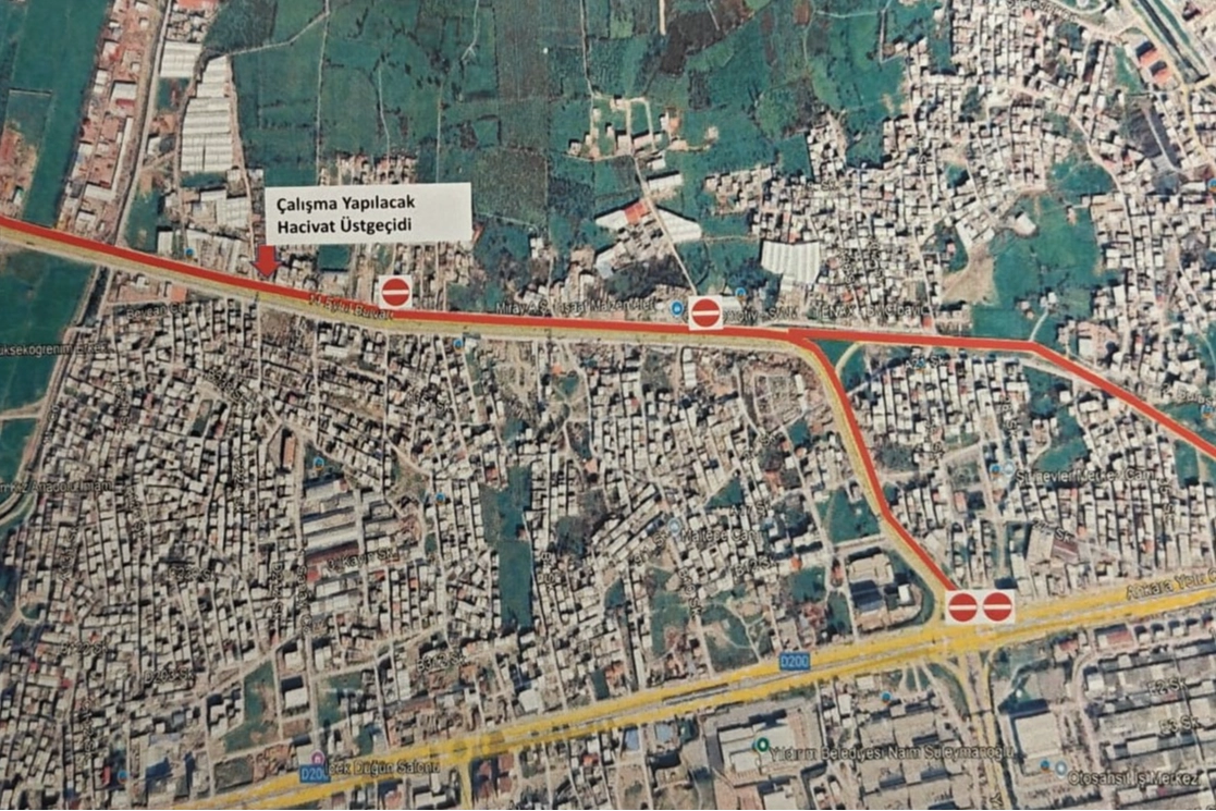 Bursa Büyükşehir Belediyesi Fen İşleri Dairesi Başkanlığı Yapı İşleri Şube Müdürlüğü tarafından Yıldırım ilçesi 11 Eylül Bulvarı üzerinde bulunan Hacivat üstgeçidinde yapılacak bakım onarım çalışmaları nedeniyle 29 Haziran 2025 (PAZAR) günü saat 05.00 ile 13.00 saatleri arasında Yakın Çevre Yolu’nun Otosansit ile Samanlı Kavşağı arasındaki Bursa istikametine gidiş yönü tek yönlü olarak trafiğe kapatılacaktır.