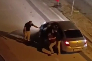 Edinilen bilgiye göre, trafikte henüz bilinmeyen bir nedenle bir otomobil sürücüsü ile tartışan iki kişi, aracı durdurup kavgaya tutuştu.