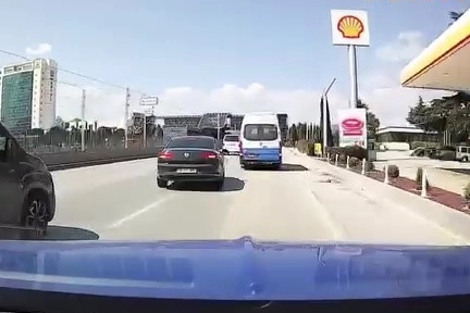 Tehlikeli anlar ise başka bir aracın kamerasına saniye saniye yansıdı.