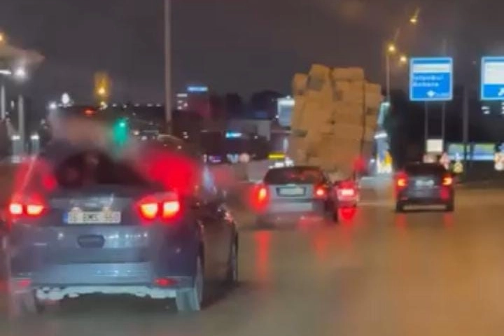 Özellikle yağışlı hava şartlarının etkili olduğu sırada kaydedilen görüntülerde, saman balyalarının herhangi bir ani fren, viraj ya da rüzgar durumunda yola savrulabilecek şekilde taşındığı görüldü.