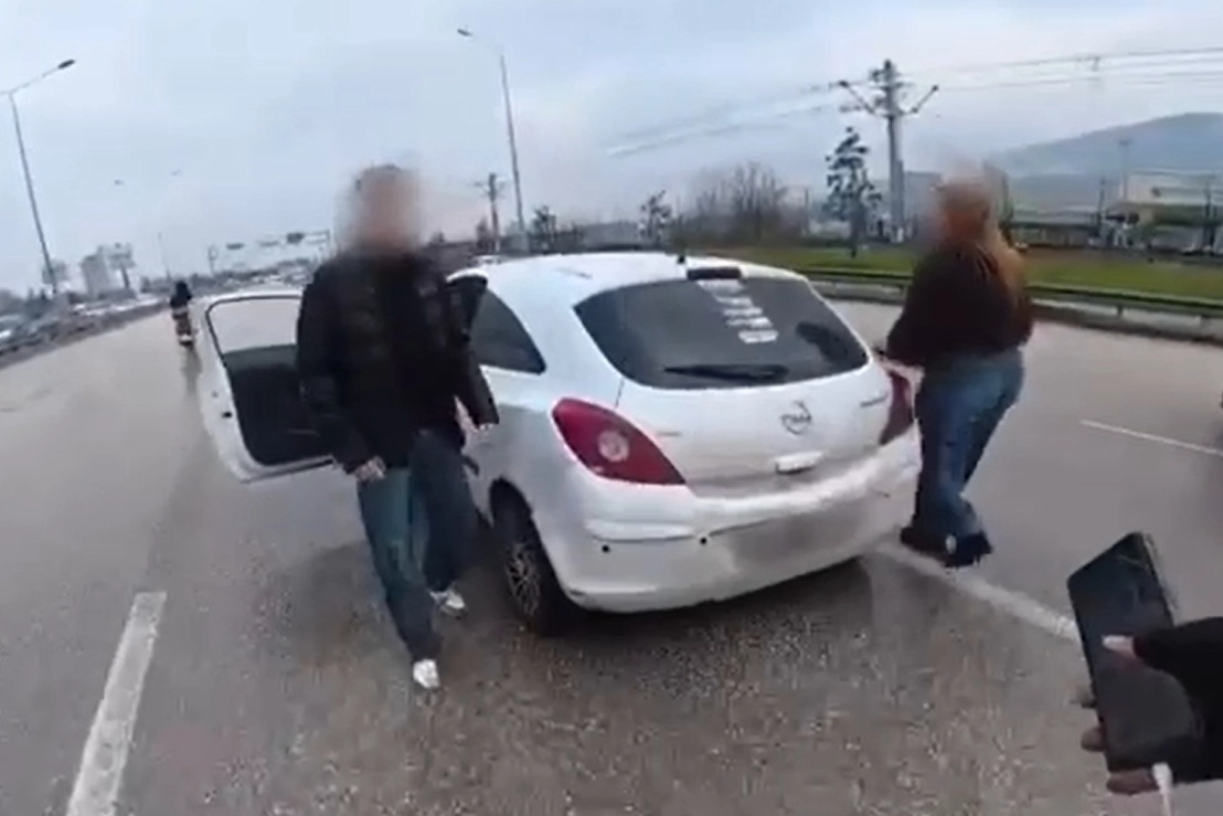 Bu sırada, seyir halinde olup, durumu fark eden motokurye ve çevredekiler tarafları sakinleştirip, kavgayı ayırdı.