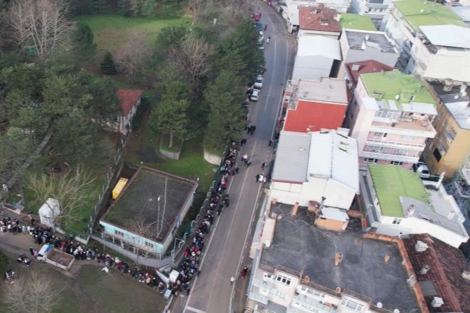 Genellikle yaşanan yoğunluk sebebiyle kapının dışına kadar çıkan kuyruk, bu sefer mahalle aralarına kadar uzadı.