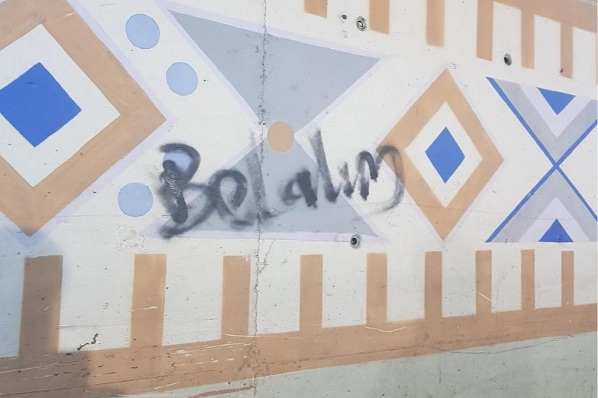 Vandallar, belediyenin daha önce yaptığı duvar süslemelerine sprey boyalarla zarar verdi.