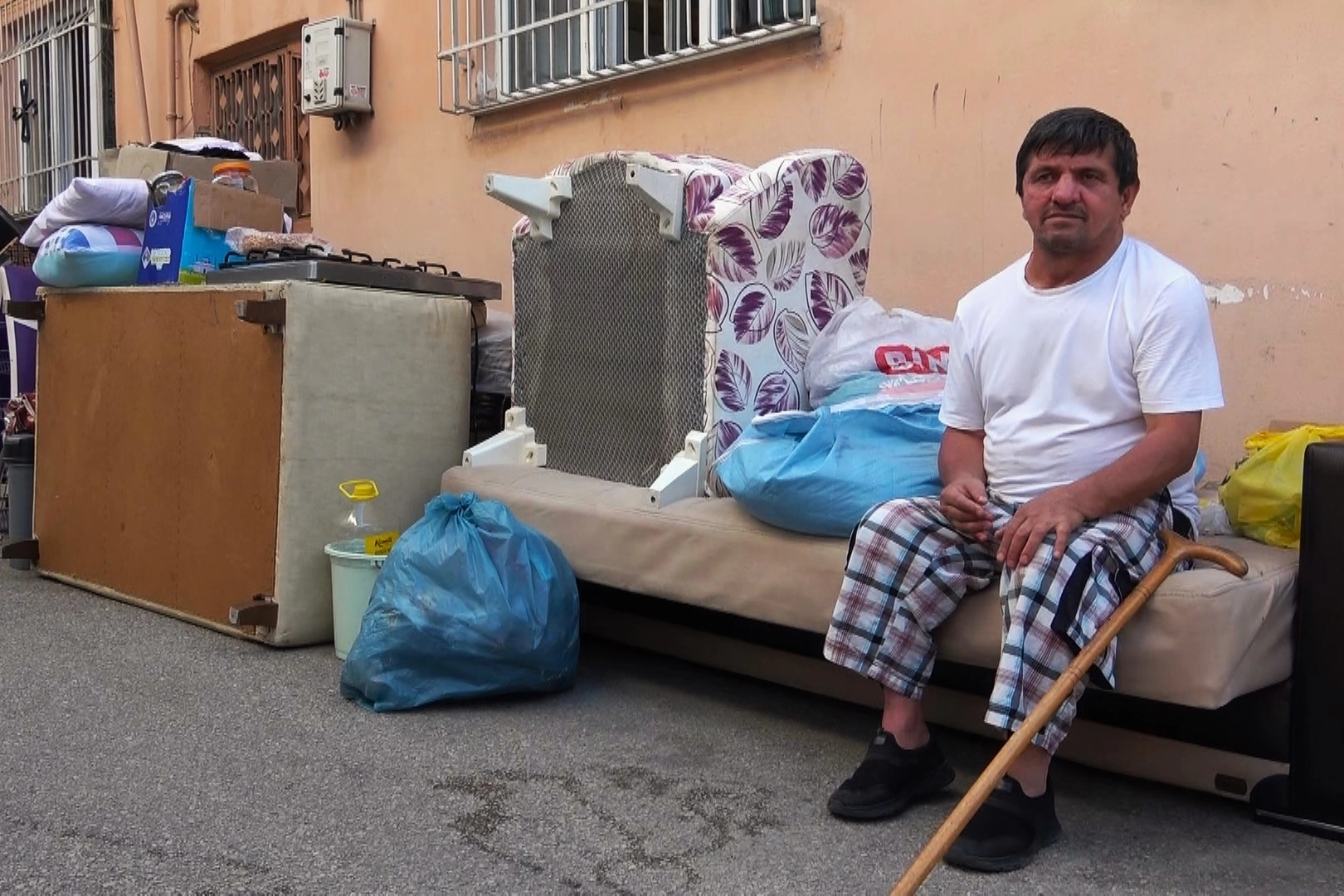 Semtteki kiralar çok fazla artınca ev sahibinin sözleşmeyi yenilememe kararı aldığını söyleyen Musa Cin, "1999 yılında felç geçirdim, engelli raporu aldım. 3 yıldır bu evde kirada oturuyorum. Bin 200 lira kira veriyordum. Sözleşmemiz bitti, yan komşular yabancı uyruklu şahıslara 10 bin liraya kiraya vermiş evlerini. Öyle olunca ev sahibi de "kirayı artırmayacağız" demedi, "biz oturacağız" dedi. Biz de ev aramaya başladık. Fakat bütçemize uygun ev bulmak zor, bizde bulamadık. Sözleşme bitiminden kısa bir süre sonra ise icra memurları ve polis eşliğinde eve geldiler. Eşyalarımı çıkardılar, ben ve eşim sokakta kaldık. Gerekli yerleri aradık, yardım bekliyoruz. Ayın 15'inde sözleşmem bitti. 11 gündür ev arıyordum. 20 gün müsaade verdiler. Ben de ayın 5'ine kadar süre istedim. Ancak 11 gün içerisinde icra memurları ile gelip bizi evden çıkardılar. Benim aylık gelirim 4 bin 200 lira, ben bu paralara ev ararken kendimi sokakta buldum” şeklinde konuştu.
