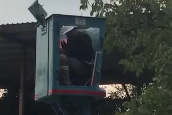 Edinilen bilgiye göre vincin kulesi üzerinde çalışan bir işçi, ağaçlık alanda bulunan arıların saldırısına uğradı.