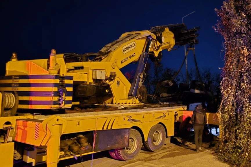 İlçeye bağlı Burgaz Mahallesi Ferah 1. Sokak'ta, kepçeyi başka bir noktaya taşımak için kaldırdığı sırada vincin halatı koptu.
