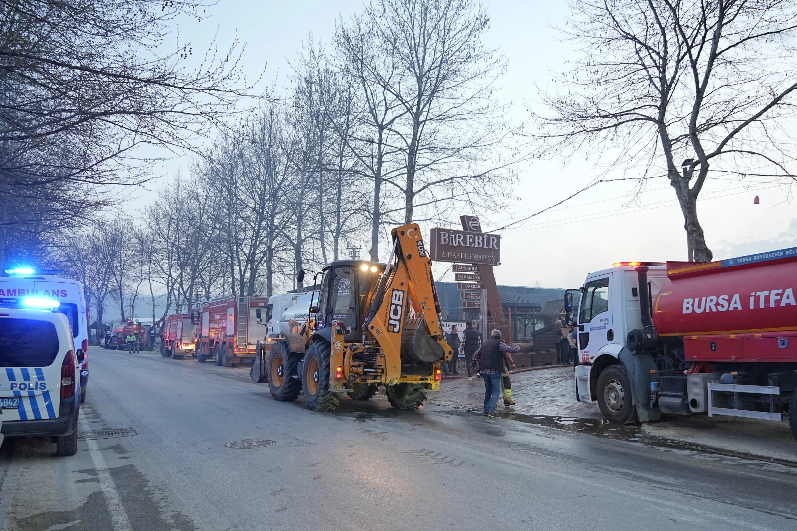 Edinilen bilgiye göre, saat 18.00 sıralarında Nilüfer ilçesi Alaaddinbey Mahallesi Köy Yolu Caddesi üzerinde ahşap ev ve kamelya satışı yapan iş yerinde yangın çıktı. Satışı yapılan ahşap evlerin birinde çıkan yangın kısa sürede büyüdü. İhbar üzerine bölgeye çok sayıda itfaiye, sağlık ve polis ekibi sevk edildi. İtfaiye ekipleri yangına müdahale ettiği sırada iş yeri sahipleri, çevre güvenliği alan polis ekipleriyle tartışmaya başladı. Kısa sürede büyüyen tartışmada 2 kişi polis ekiplerine saldırdı. Olay yerine takviye olarak çevik kuvvet ve yunus timleri sevk edildi. Polise saldıran 2 kişi gözaltına alınırken, yangın itfaiye ekipleri tarafından 1 saatte kontrol altına alındı.