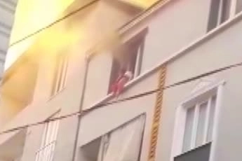Yangını fark eden çevredekiler durumu ekiplere bildirirken, anneanne büyük bir panik içerisinde torununu pencereden aşağıda bekleyen vatandaşların üzerine bıraktı.