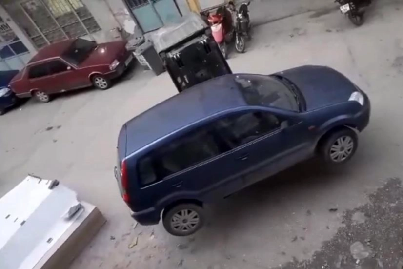 Aracın sahibini bulamayan esnaf, çare aradı. Esnaf, forklift ile aracı yerinden kaldırıp başka bir yere koydu. O anlar amatör kameraya yansıdı.
