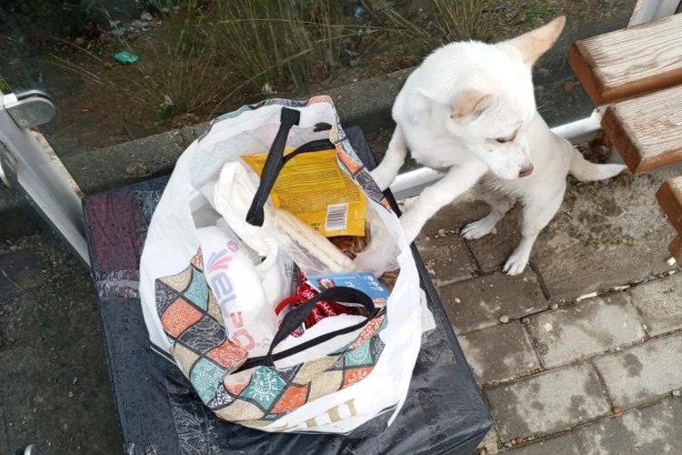Gemlik ilçesinde sabah saatlerinde durağın yanında yiyecek dolu bir poşet ve beyaz tüylü bir yavru köpek gören vatandaşlar, durumu yetkililere bildirdi.