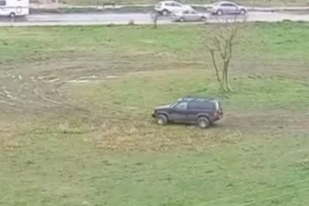 Drit ile yeşillik alana zarar veren sürücü, bir vatandaş tarafından cep telefonu kamerası ile görüntülendi.