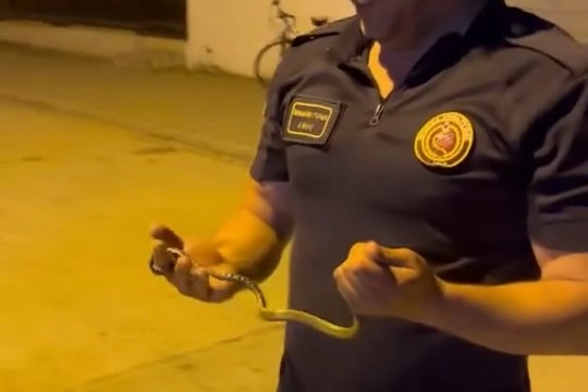 Yakalanan yılan, doğaya zarar verilmeden güvenli bir bölgeye bırakıldı.