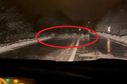 Sürü, yolda duran arabaya aldırış etmeden karşıya geçti. Domuz ailesini gören vatandaş, o anları cep telefonu kamerasıyla kayda aldı.