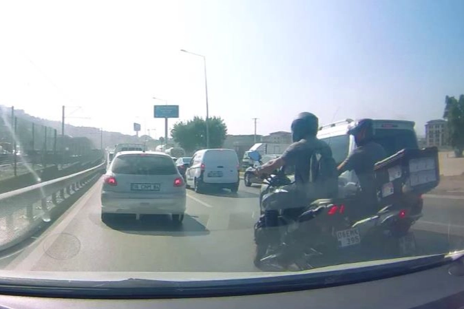 Osmangazi ilçesi İzmir Yolu Caddesi üzerinde meydana gelen olayda, yoğun trafikten kaçmak isteyen motosikletlilerin trafik kurallarını hiçe sayarak şerit değiştirdiği ve araçların arasından ilerledikleri görüldü.