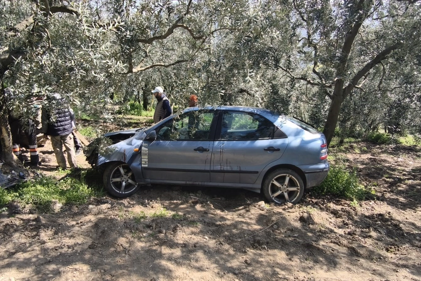 Köpeğe çarpmamak için manevra yapan sürücü, yol kenarındaki zeytin tarlasına daldı. Kazada, otomobil sürücüsü Mehmet A., yaralandı.
