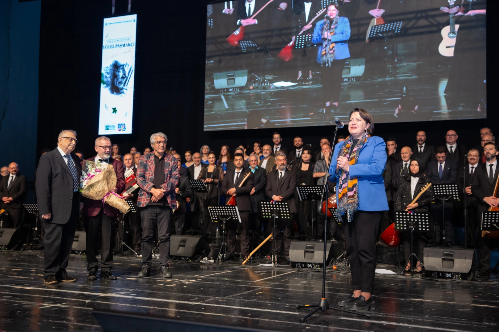 Etkinlikte konuşan 89 yaşındaki duayen sanatçı Yücel Paşmakçı ise, Bursa Büyükşehir Belediyesi Konservatuvarı Türk Halk Müziği Bölümü'nün 1992 yılında temellerini attıklarını belirterek, yetiştirdiği birçok öğrencisinin Türkiye'nin tanınmış sanatçıları arasında yer almasının kendisine onur verdiğini ifade etti. Paşmakçı, “Halk müziği bölümünün kuruluş aşamasında haftada iki gün gelip çalışıyordum. Bu sebepten dolayı Bursa’ya hep bir alışkanlığım var. Burada öğrenciler yetiştirdik, onlar da hoca oldular. Onlar da sanatçı yetiştiriyorlar. Bu yüzden Bursa benim için çok anlam ifade ediyor. Türkiye’nin farklı yerlerinde öğrenciler yetiştirdik. Şimdi onlar Türkiye’nin en çok tanınan halk müziği sanatçıları oldular. Benim için iftihar meselesi. Bursa benim için çok anlamlı. Burada olmaktan dolayı çok heyecanlıyım, büyük bir coşku var içimde. Bu geceye emeği geçen herkese çok teşekkür ediyorum” diye konuştu.