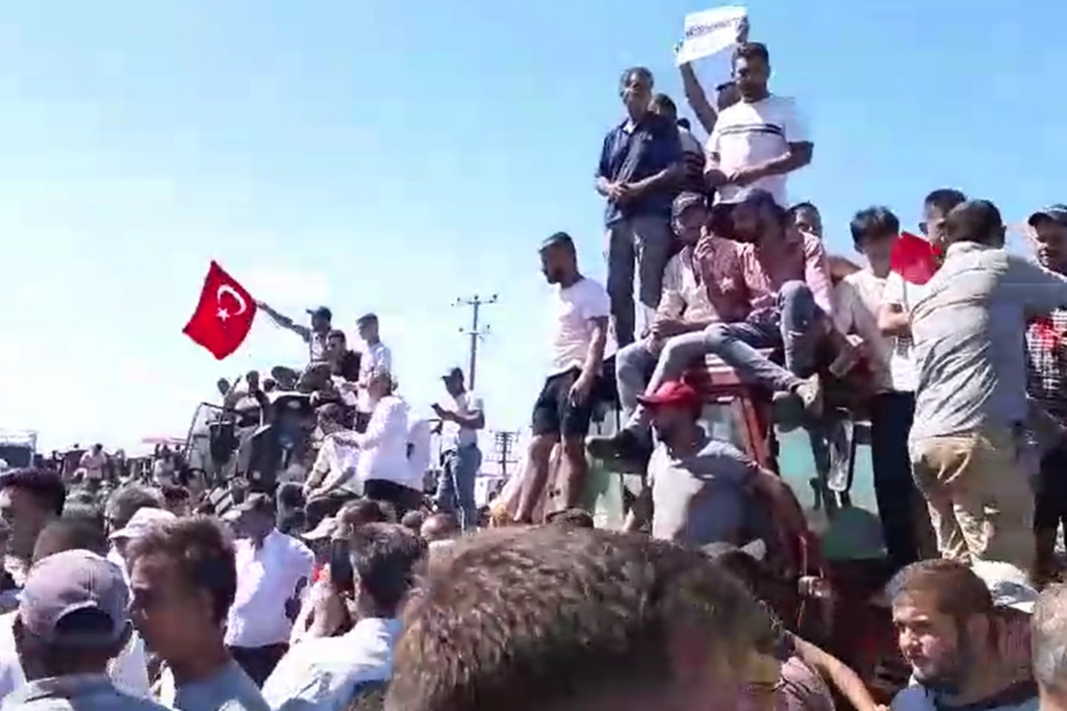 Üreticilerle görüşen Vali Demirtaş, eylem yapan çiftçilere megafonla seslendi.