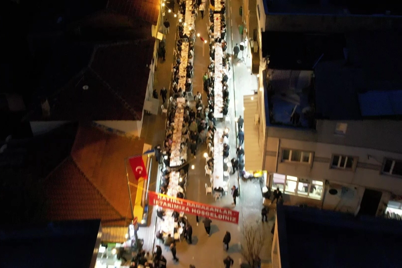 Yüzlerce metre boyunca kurulan uzun iftar sofraları mahalle sakinlerini ve şehir dışından gelen misafirleri bir araya getirdi.