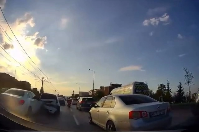 O esnada gelen otomobil önüne kattığı araçları, sürüklemeye başladı.