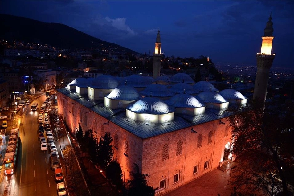 Bursa'daki Ulu Cami ve diğer camilerde kandil sebebiyle yatsı namazının ardından programlar düzenlendi.