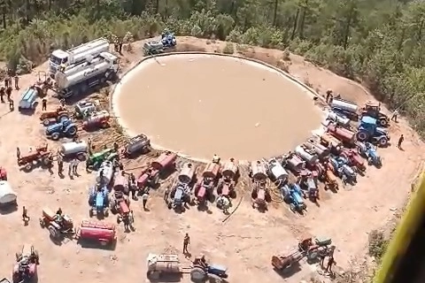Ancak havuzdaki su tükenince tankerler bu kez helikopterlere su taşıma görevini üstlendi. Onlarca tanker havuzu yeniden doldurarak helikopterlerin kesintisiz çalışmasına destek verdi. Çiftçilerin oluşturduğu traktörlü tanker ordusu ise, söndürme helikopterinden görüntülendi.