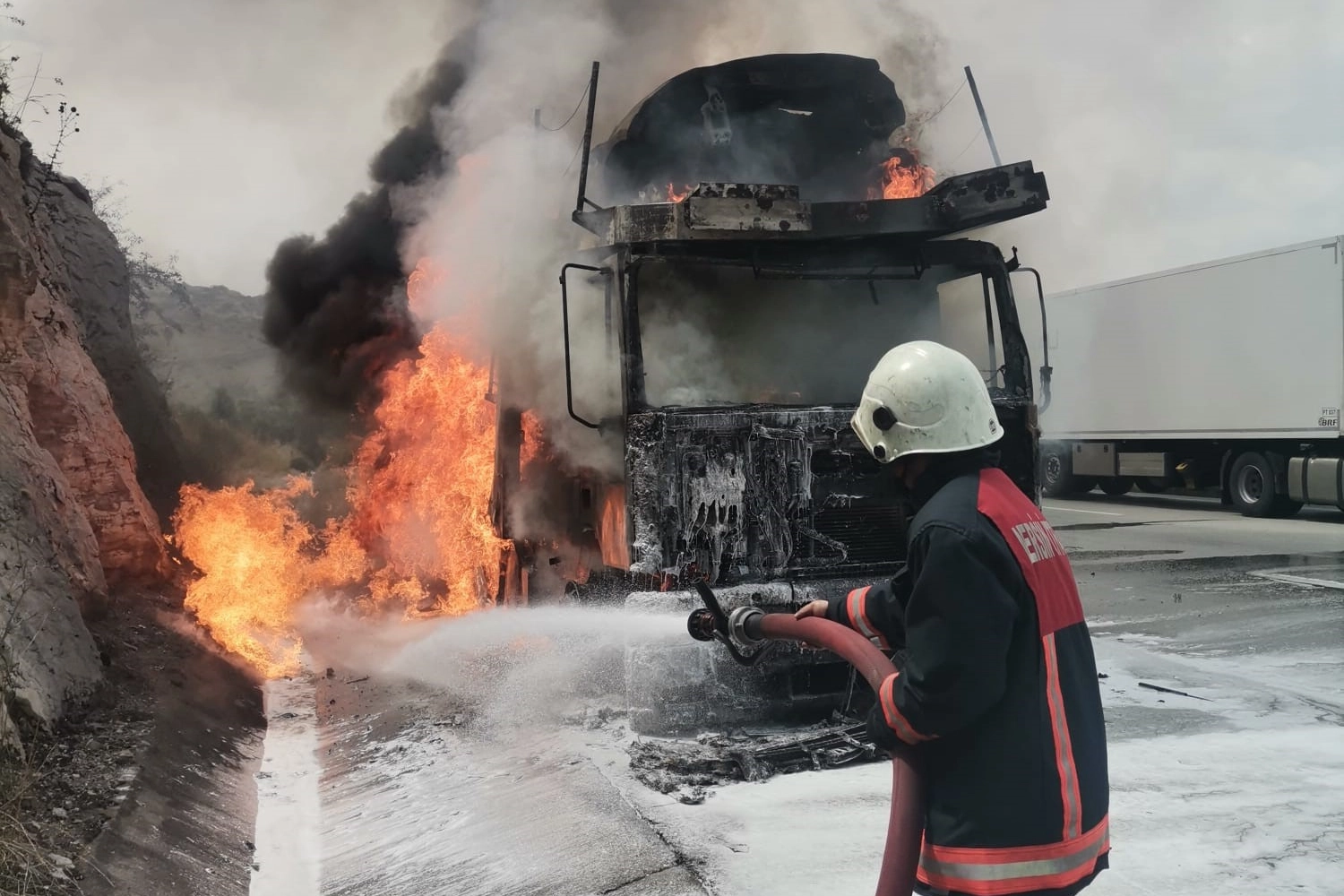 Alınan bilgiye göre, Ö.G.'nin sürücülüğünü yaptığı 06 LJ 923 çekici plakalı tır, Bursa'dan aldığı ve Mersin'e götürdüğü 7 sıfır araç ile Pozantı-Tarsus istikameti Damlama inişi ile çöp deposu arasında kalan bölgede seyir halindeyken, 06 BK 353 plakalı dorsesinin lastik bölümünden yanmaya başladı.
