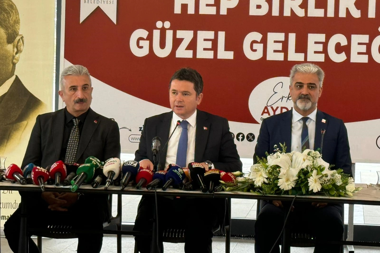 CHP İl Başkanı Nihat Yeşiltaş ve Belediye Başkan yardımcıları ile basın mensuplarının karşısına geçen Erkan Aydın, bütün sorulara cevap verdi.