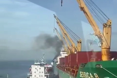 Edinilen bilgiye göre, limandan hareket eden bir gemi, başka bir gemiye çarptı.