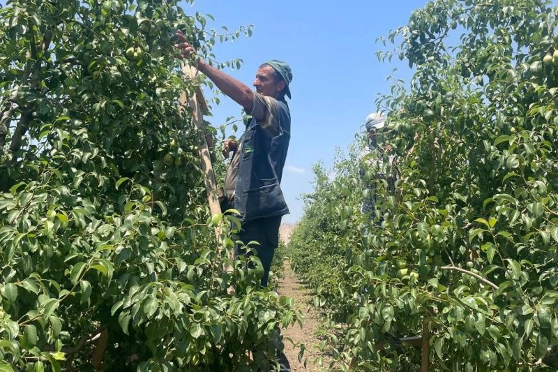 Bahçedeki verime bağlı olarak çalışan tarım işçilerinin sayısı değişkenlik gösteriyor. İşçiler, olgunlaşmamış meyveleri dallardan koparıp yere bırakıyor.