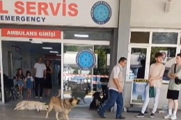 Acilin girişine yerleşen köpekler ambulans seslerini duyunca havlayarak vatandaşların üzerine doğru yürüdü.