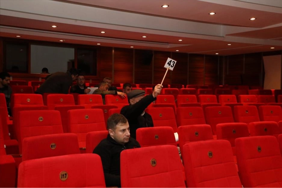 Hayvan üreticilerinin kotra kiralamak üzere hazır bulunduğu salonda, 60 m2’lik 114 adet büyükbaş hayvan kotrası, 20 adet 25 m2 küçükbaş hayvan kotrası, 24 adet 12,5 m2 küçükbaş hayvan kotrası ile 8 adet kurban kesim yeri ihaleye çıkarıldı.