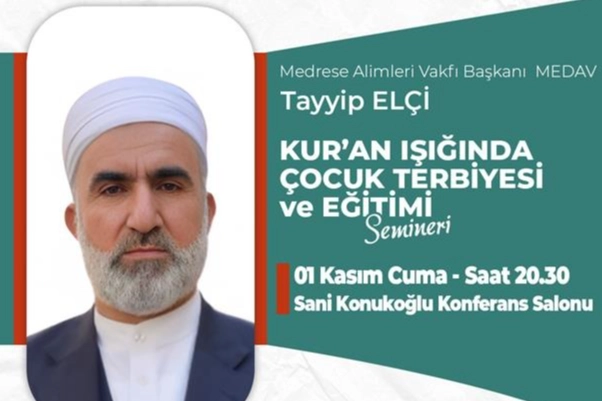 Aile Okulunun bu haftaki konuğu Medrese Alimleri Vakfı (MEDAV) Başkanı Tayyip Elçi olacak. 01 Kasım Cuma akşamı 20.30’da Sani Konukoğlu Konferans Salonunda İnegöllülerle buluşacak Tayyip Elçi, “Kuran Işığında Çocuk Terbiyesi ve Eğitimi” konulu seminerde anlatımlarda bulunacak.