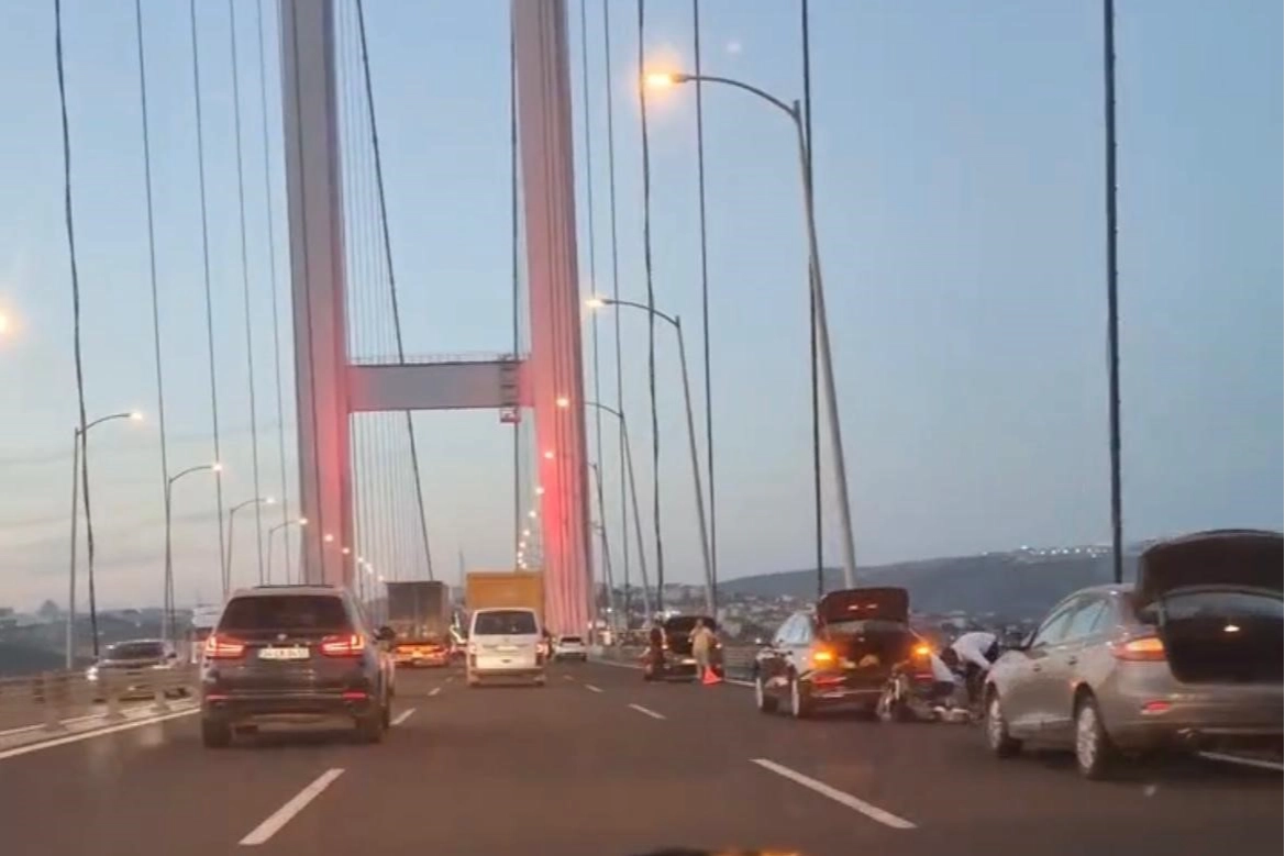 Osmangazi Köprüsü geçişinde Bursa'dan İstanbul istikametinde seyir halinde olan araçların lastikleri art arda patladı.