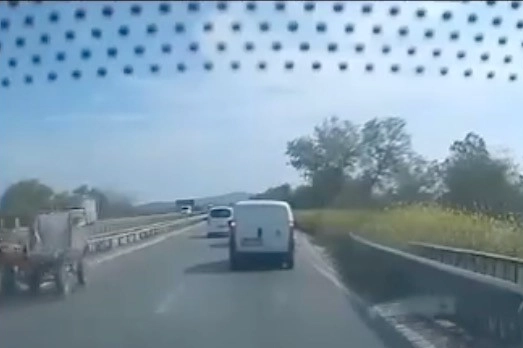 Seyir halindeki araçların bulunduğu sol şeritte, karşı yönden gelmesi gereken bir at arabasının aniden ortaya çıkması sürücülerde paniğe neden oldu. Araçlar, çarpışmayı önlemek için ani manevralar yapmak zorunda kaldı.
