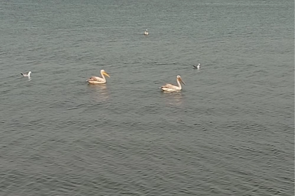Kendilerini görüntüleyen insanlara aldırış etmeyen pelikanlar gölde yüzerek güzel havanın tadını çıkardı.
