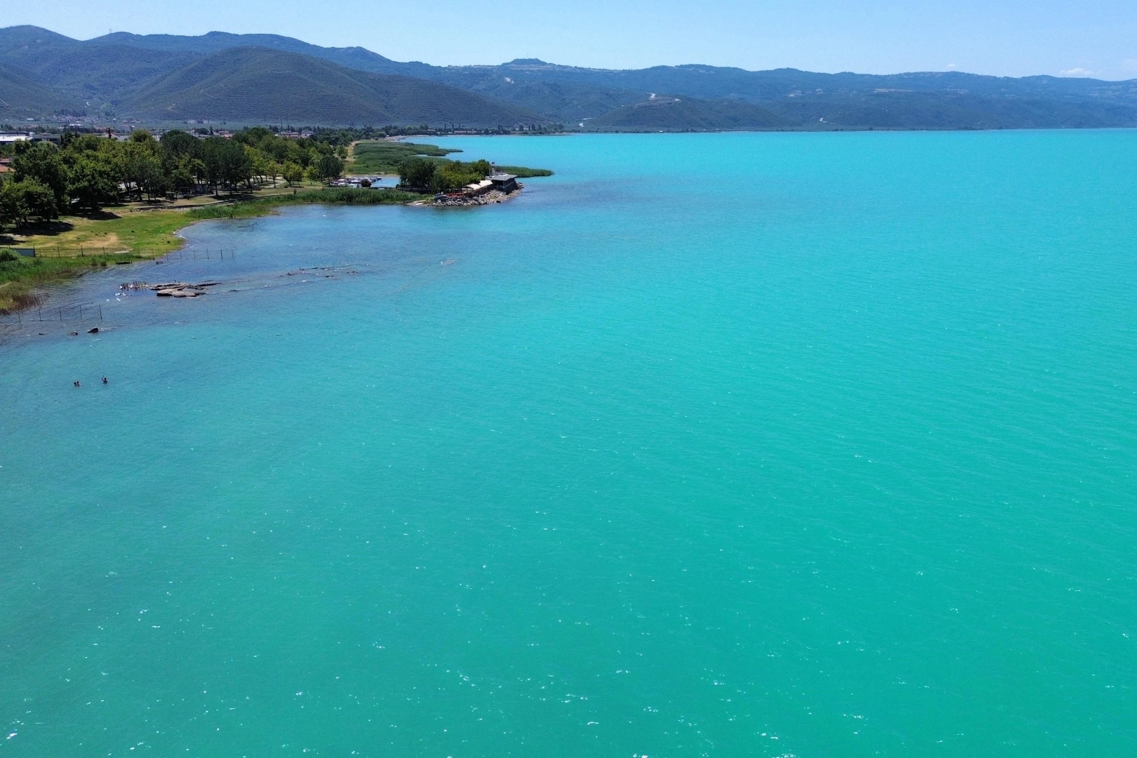 Orhangazi ve İznik ilçelerine kıyısı olan İznik Gölü, plankton patlaması sonrası turkuaz renge büründü.