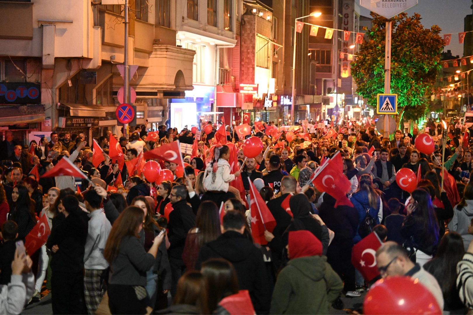 Cumhuriyet’in ruhuna yakışır biçimde organize edilen kutlamalarda dağıtılan Türk bayrakları ilçe genelinde kırmızı-beyaz bir görsel şölen oluşturdu. İlçe merkezi baştan sona Türk bayraklarıyla donatılırken, vatandaşların ellerinde dalgalanan ay yıldızlı bayraklar ve dillerde yankılanan marşlar, Karacabey sokaklarında unutulmaz bir atmosfer yarattı.
