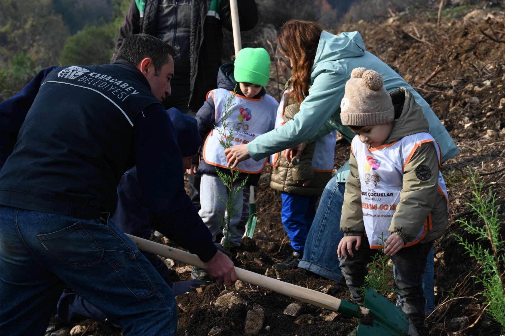 Orman İşletme Müdürlüğü ve Karacabey Belediyesi iş birliğiyle düzenlenen fidan dikim etkinliğinde engelli bireyler, minik öğrenciler ve Belediye Başkanı Fatih Karabatı bir araya geldi. Başkan Karabatı, "Geçmişte yaşadığımız yangının izlerini hep birlikte sileceğiz, bu alan yeniden yeşerene kadar çalışmalarımız sürecek. Bu çalışmanın startını engelli kardeşlerimiz ve minik öğrencilerimizle birlikte gerçekleştirmek bizim için ayrıca değerli." diyerek hem çevre bilincinin hem de toplumsal dayanışmanın önemini vurguladı.